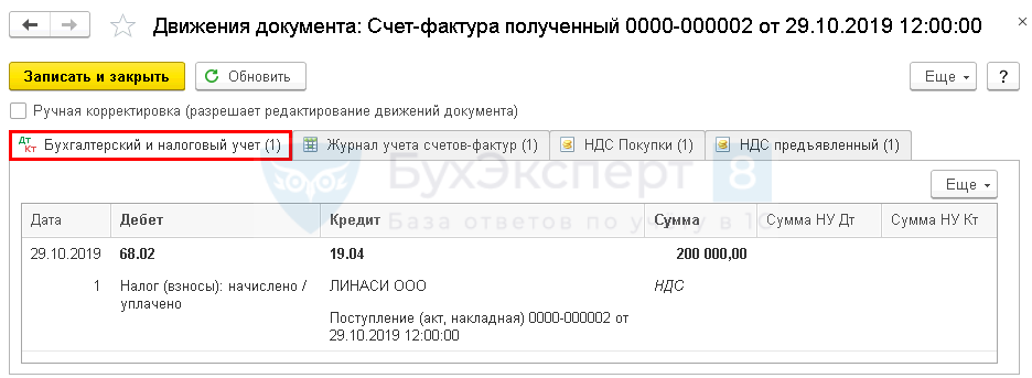 | 68.02 | 19.03 | 200 000 | Принятие НДС к вычету | ||||