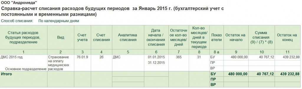 Рис. 3. Справка-расчет списания расходов будущих периодов