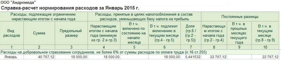 Рис. 4. Справка-расчет нормирования расходов на ДМС за январь 2015 года