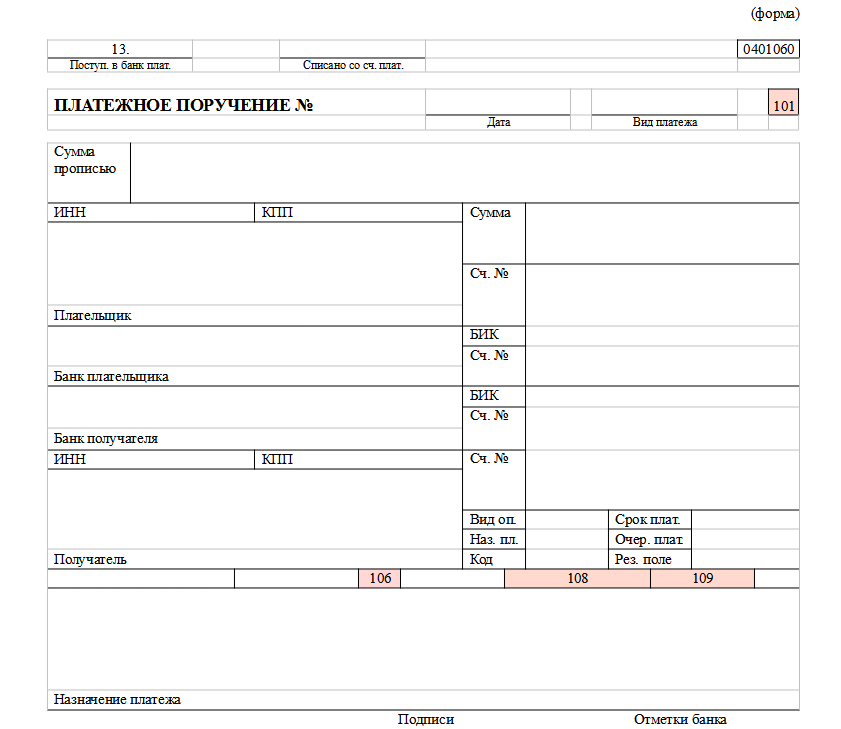 Важно: для авансовых платежей можно не указывать дату — нужно написать 0. Если вы заполняете платёжное поручение вручную, указывать новый код нужно в поле 109.