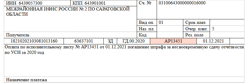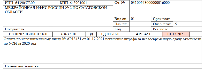 Раньше при погашении долгов перед бюджетом в поле «Номер документа» указывали только порядковый номер. Например, если с предпринимателя взыскивали штраф по исполнительному листу № 13451 от 01.12.2021, в платёжке он указывал только число — 13451.