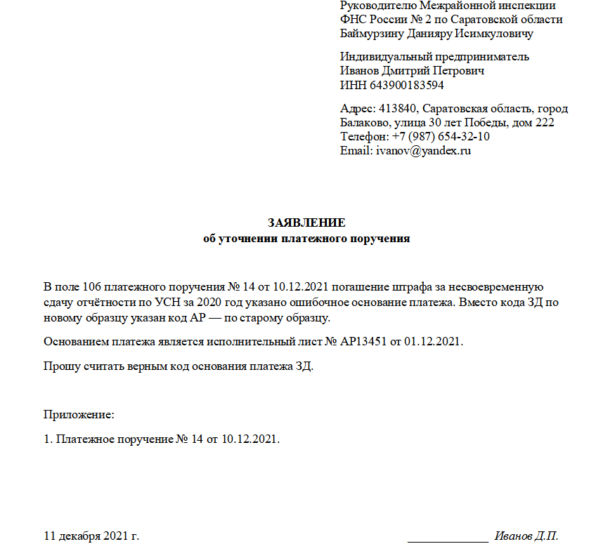 Если вы по привычке заполнили платёжку по старым правилам и уже отправили в налоговую, ещё не поздно всё исправить. Для этого нужно отправить заявление об уточнении платёжного поручения.