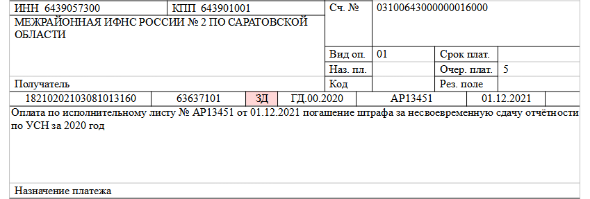 - При указании основания платежа ЗД (например, по требованию ИФНС):