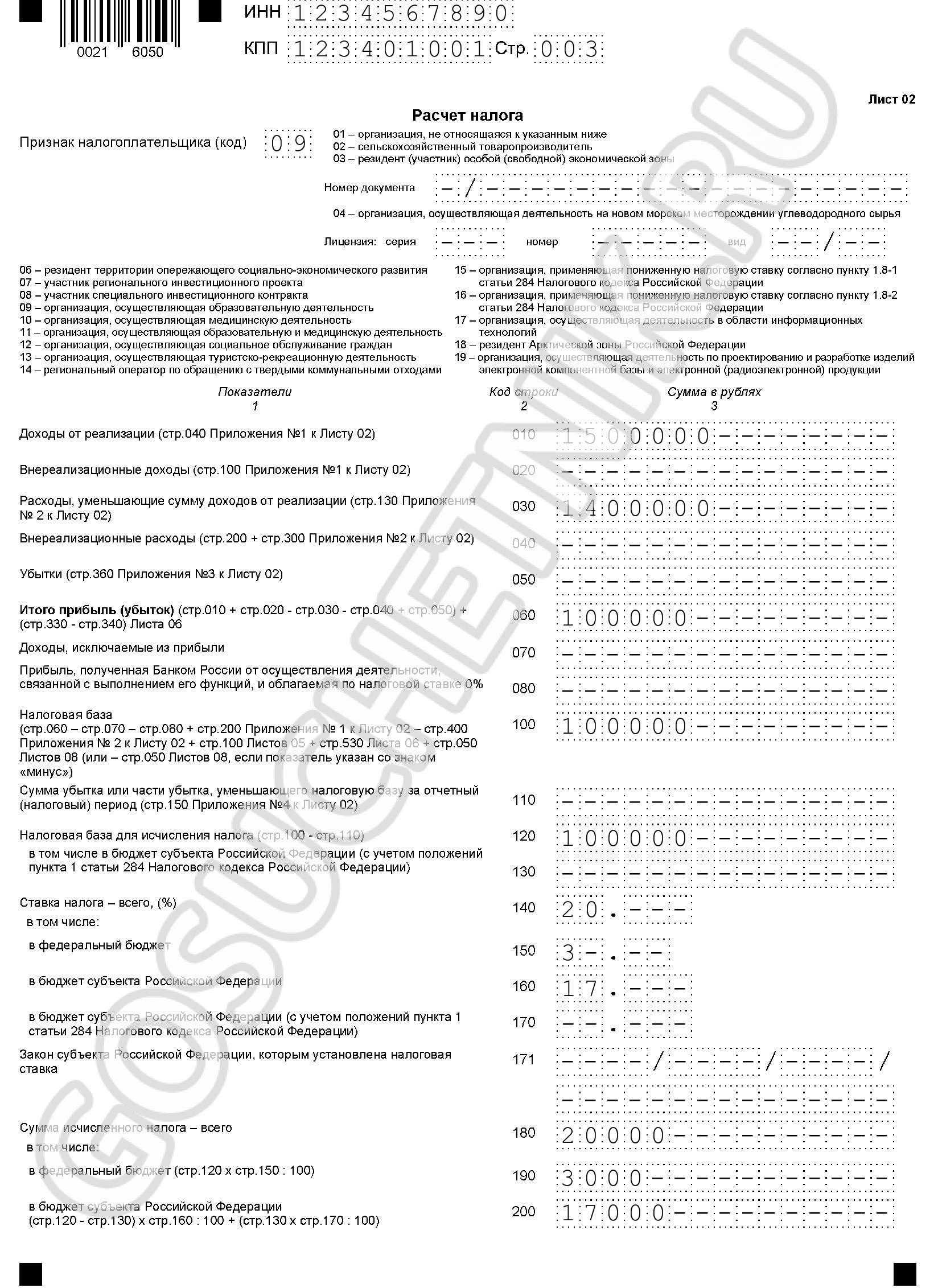 Актуальный пример заполнения декларации на прибыль в 2022 году в части листа 02.