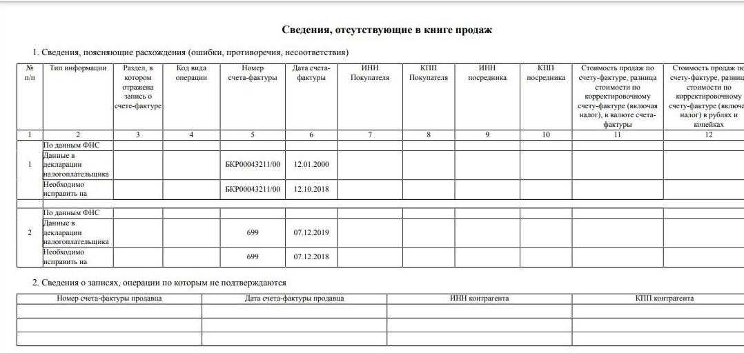 В этом примере при заполнении книги покупок за IV квартал 2019 г. бухгалтер неправильно указал даты счетов-фактур, в результате чего возникли расхождения с данными в книгах продаж контрагентов. Поскольку неточность не привела к снижению суммы налога, это ошибка предшествующего отчетного года, не являющаяся существенной, и уточненную декларацию предоставлять не требуется. Достаточно заполнить ответ на требование, и данные в базе налогового органа будут откорректированы автоматически.