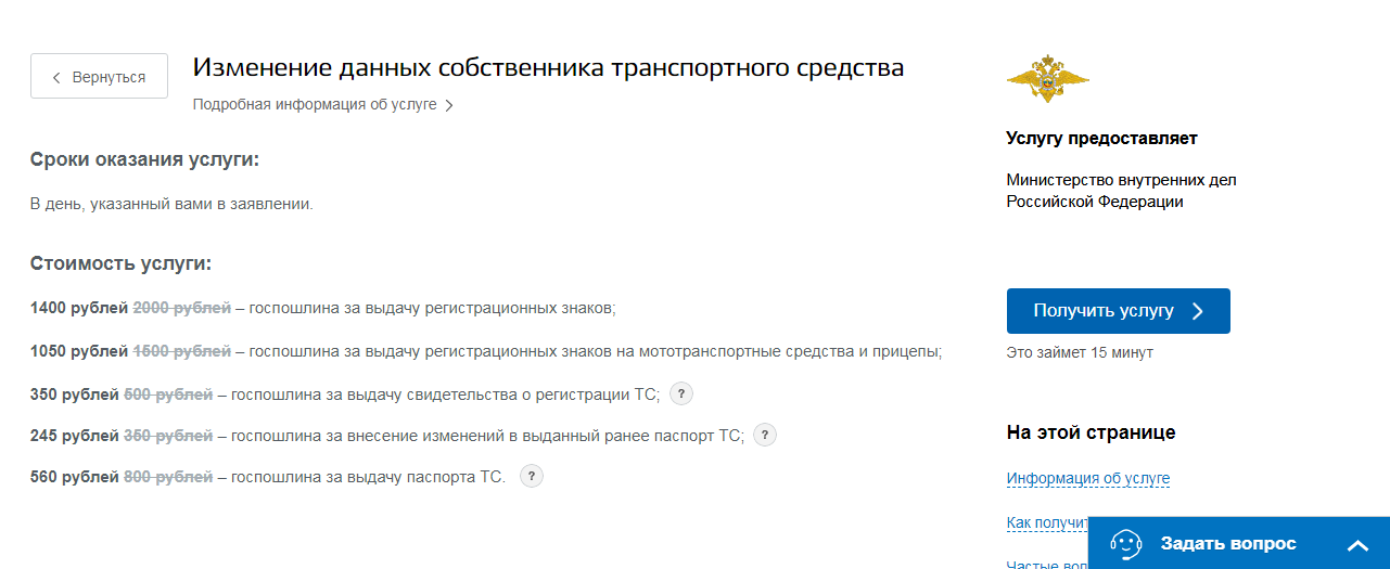 - внесение изменений в действующий ПТС — 350 рублей (245 рублей).