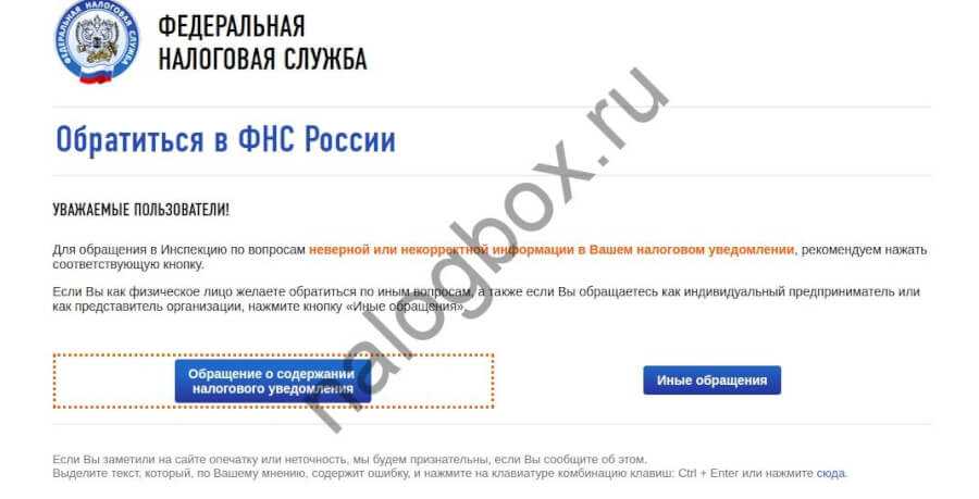 - либо через сервис сайта ФНС «Обратиться в ФНС России».